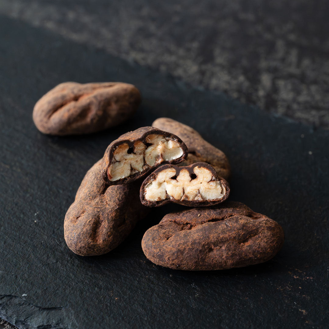 ビターショコラの奥で広がる、3種ナッツの個性。