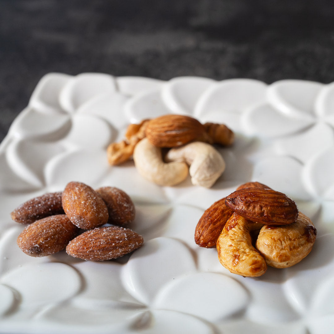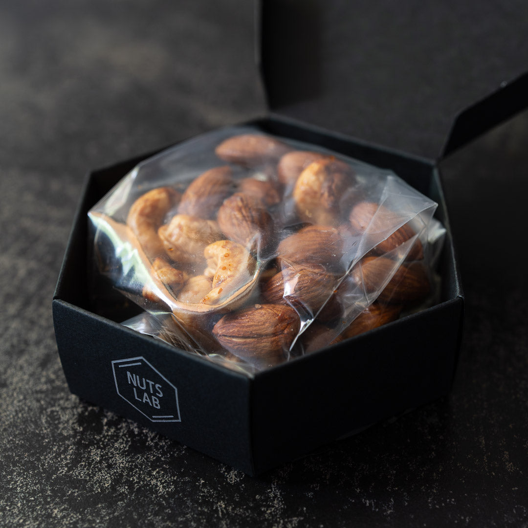 昔ながらの木桶仕込み製法で醸造された少し甘めのしょうゆとアーモンド・カシューナッツを合わせました。